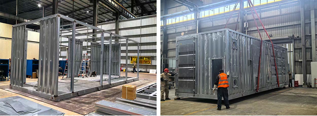 The prefabricated enclosure adopts a reinforced welded structure, combining a profiled steel frame with high-strength corrugated panels.